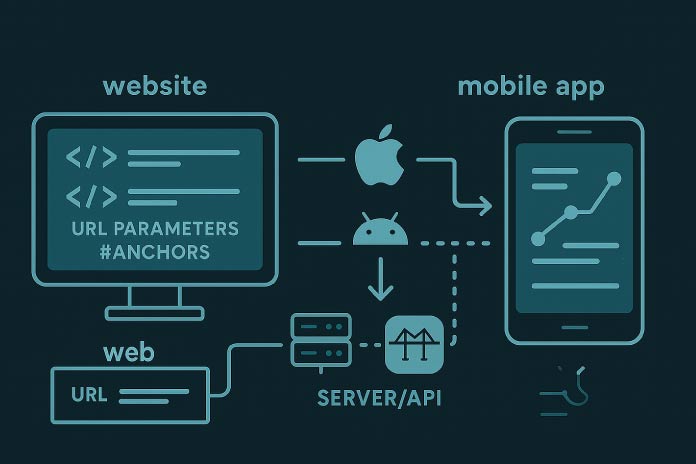 - Custom URL Schemes: یک طرح URL سفارشی (مثلاً myapp://product/123) ایجاد میکنید که تنها اپلیکیشن شما میتواند آن را باز کند. این روش محدودیتهایی دارد، از جمله اینکه اگر اپ نصب نباشد، کار نمیکند.